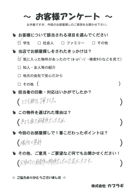 M・M 様ご職業:学生