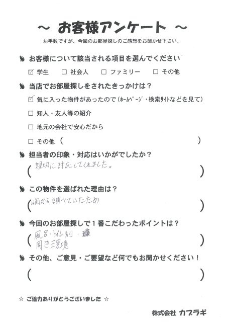(株)カブラギでは学生さん向けのお部屋を多く取り扱っております。